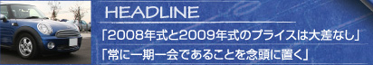HEADLINE「2008年式と2009年式のプライスは大差なし」「常に一期一会であることを念頭に置く」